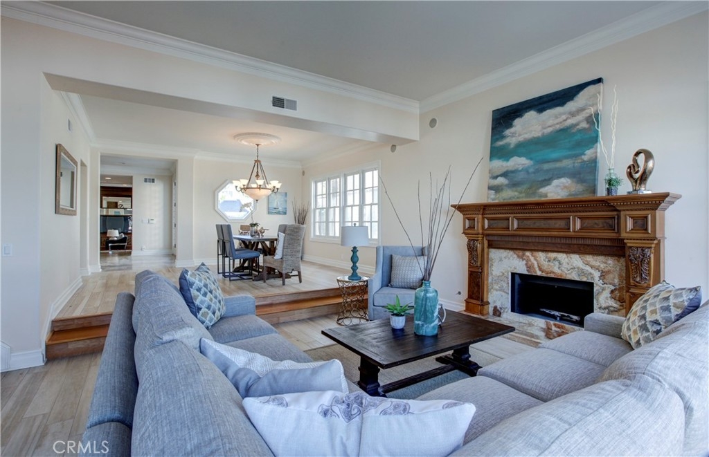 Nicely upgraded home located in the highly desired Belcourt community with amazing views of the city lights. Enter home through 8 foot glass double entry doors to the large foyer with sweeping staircase and high ceilings. Upgraded light flooring throughout the main floor where the family room, living room, dining room, and kitchen are located. The kitchen offers a breakfast bar, large walk-in pantry, breakfast nook, upgraded countertops, white cabinets, high end stainless steel appliances with double oven and recessed lighting. Double glass doors off the kitchen leads to an outdoor garden. Ample natural light flows throughout the home which has a light airy feeling in every room. Highly desired open concept with the formal dining room open to the family room which features a combined granite and wood custom fireplace surround. The family room opens through double glass doors to the backyard. The living room offers built-in cabinets and second fireplace with combined granite and wood custom surround. There is a main floor powder room and large laundry room with granite countertops, built in sink and ample cabinet storage. The oversized master retreat has a large seating area, third custom surround fireplace and natural light. Ensuite master bath offers a double vanity, soaking tub, walk in shower and walk in closet. Upstairs guest bath has two vanities and a glass enclosed walk in shower. Entertain friends and family in the backyard with low maintenance turf grass and raised dining area which can also be a great location for a spa. Don't miss the two car attached garage with plenty of built in storage. Belcourt is a quiet 24 hour guard gated community with resort style amenities including pool, spa, bbq area and clubhouse. Absolute ideal location nearby is Newport Beach, Fashion Island, Balboa Island, marinas, award winning Corona Del Mar schools, world class resorts, dining and shopping. Live the Newport Beach lifestyle.