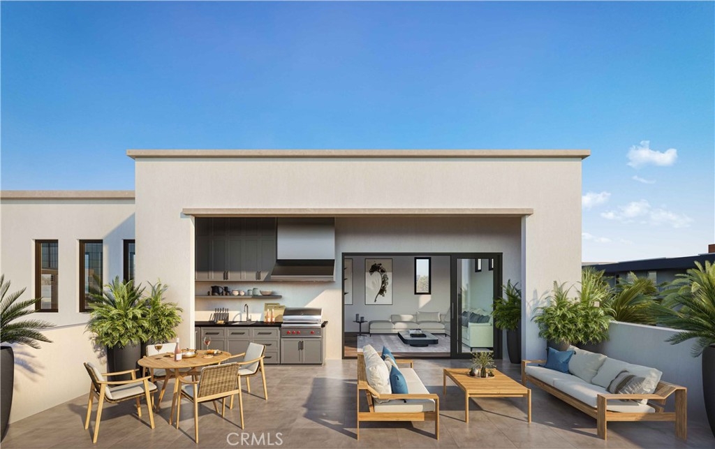 An entertainer's dream, this is a unique opportunity to own one of the few top-floor Penthouses overlooking Uptown Newport. This 2-story Penthouse features 3 bedrooms, with 2 full baths and a powder room on the lower level, offering approximately 2,811 square feet. Step out of the elevator directly into your residence, featuring a 20-foot double height foyer. The 2nd floor offers an additional den, full bath, and 357 square foot outdoor terrace with outdoor kitchen. The entertainers' kitchen is finished in custom millwork and countertops, and outfitted with Wolf and Subzero appliances. An additional prep sink is offered at the kitchen window with views. The light-filled primary suite is tucked away for privacy, with a spacious walk-in closet, and en-suite bath replete with a large soaking tub, spa-sized shower, and custom dual vanity. Floating above the treetops, Residence 6P is an indoor-outdoor oasis of casual sophistication designed to enhance the Newport Beach lifestyle. Tailored amenities include a serene, heated pool and spa, resort-inspired cabana, and state-of-the-art fitness center. The bespoke lobby provides direct elevator access to the residence, while owners enjoy private 2-car garages with storage.