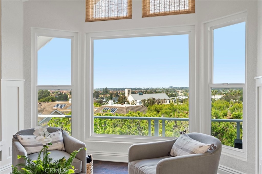 PANORAMIC OCEAN, CATALINA & NEWPORT CENTER VIEWS IN PRESTIGIOUS BELCOURT HILL. Experience coastal sophistication at its finest in this stunning 3 bedroom,3.5 bath, 3,246 square foot home, with 3 car garage. Beautifully remodeled in 2021. MOVE IN READY. This unique end unit home is situated on a coveted, elevated lot with panoramic views of Palos Verdes, Catalina Island, Newport Center. Breathtaking sunset view elevates the California Coastal lifestyle. The generous floor plan is enhanced by the convenience of having the Primary bedroom with ensuite bath, walk in closet, tranquil sitting area, custom fireplace and built-in custom cabinets on the entry level. High ceilings with skylights provide an open, bright interior for the entry, dining room, and living room. The dining room is adjacent to a well designed kitchen making entertaining fun and easy. The privacy of the lower level is centered around a great room and outdoor deck which are oriented towards the sunset views. This level is ideal space for entertaining guest or relaxing with family. There are 2 secondary bedrooms, two baths (one ensuite), an oversized laundry room with built in cabinets for extra storage and a surprisingly spacious storage/bonus room. Step outside to your private courtyard and multiple balconies, perfect for alfresco dining, sunset watching or just enjoying the refreshing coastal breeze. Additional features include newer dual pane windows throughout and air conditioning. Community amenities include pool, spa and large outdoor entertaining area. Belcourt Hill is conveniently located minutes from Fashion Island, shopping, dining, and local beaches, this exceptional home offers a rare opportunity to enjoy the quintessential Newport Beach lifestyle in one of the most sought after communities.