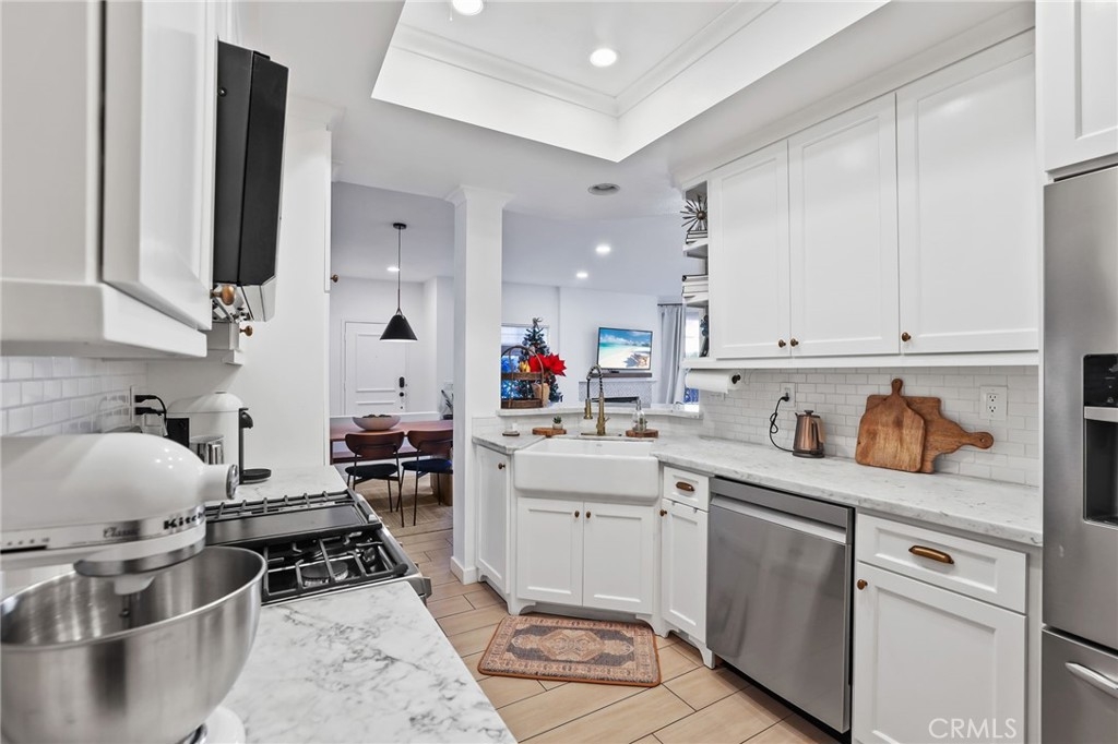 Newport Beach Remodeled Luxury Townhome located in a private, gated community just steps from the Back Bay trails. This stunning single-level, ground-floor residence features 2 bedrooms, 2 full bathrooms, and two single-car garages, including one attached garage with direct interior access. The beautifully remodeled interior offers a light-filled living and dining area with 9-foot ceilings and upgraded ceramic tile wood-style flooring throughout. The fully remodeled kitchen showcases, custom cabinetry, Carrara marble countertops, recessed lighting with under-cabinet illumination, crown molding, and new stainless-steel appliances, all included. A gas range with double ovens and a refrigerator water line provide both style and functionality. Custom dining room lighting and a wall of beveled mirrors enhance the sense of space and flow seamlessly into the family room, featuring a gas fireplace (wood-burning capable). Sliding glass doors open to a large, private patio, perfect for indoor-outdoor living. The spacious primary suite offers two walls of mirrored closets and a completely remodeled en-suite bath with dual vanities, Carrara marble countertops, a new walk-in shower, updated sinks, faucets, mirrors, and medicine cabinets. Additional highlights include an interior laundry room, a newer heating system, and a community that has recently undergone a comprehensive renovation, including new roofs, fresh exterior paint, updated landscaping, resurfaced stone walkways, and a remodeled pool and spa. Centrally located near the Back Bay, 73 Toll Road, shopping, schools, and dining, this home offers the best of Newport Beach living with direct access to one of the area’s most desirable outdoor lifestyle destinations. Come experience the Newport Beach lifestyle at its finest.