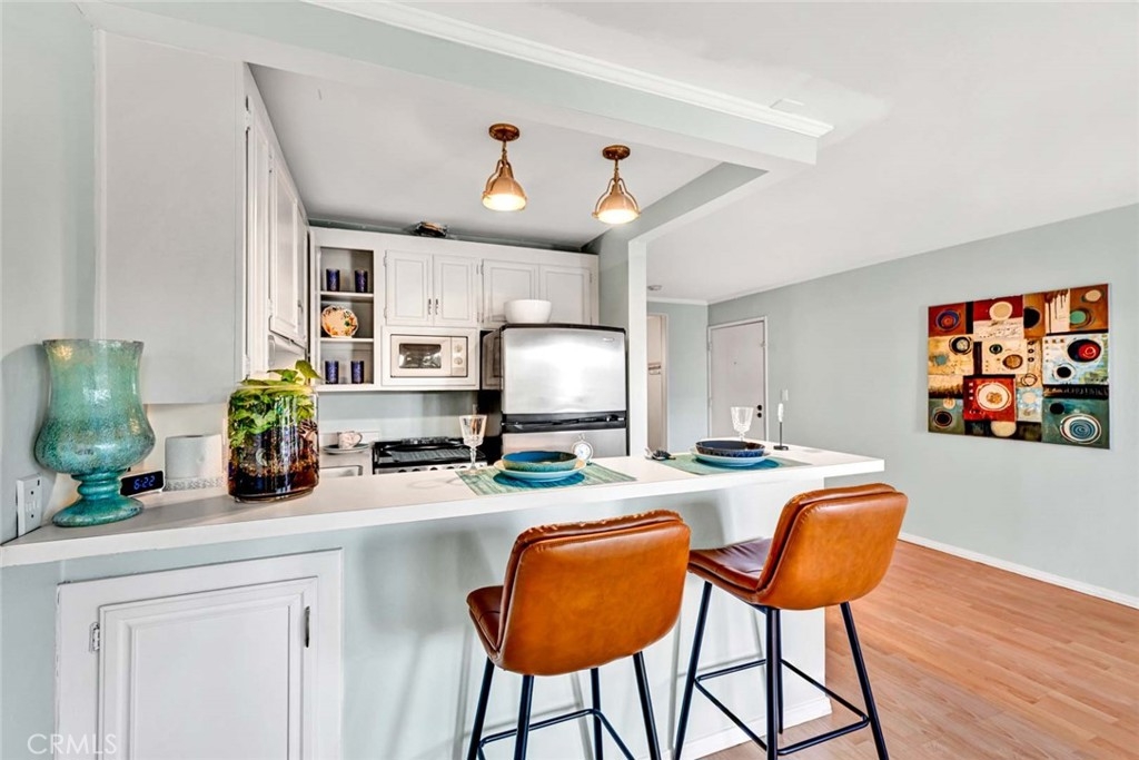 Unit #103 is an amazing resort vacation home or live here full-time. The property would also be a welcome destination for Snowbirds. This coastal condo is ideally located within the gated community at Versailles on the Bluffs. A rare bonus in this price range is the water view from your balcony. Walkability score of 86. In just a few minutes you can be sitting in the warm sand, swimming, surfing or collecting shells; so much fun. Famous Balboa Peninsula, Lido Isle, Fashion Island, are nearby and offer the very best in shopping, fine dining, and entertainment. Delight in attending festivals and boat parades which are longstanding Newport Beach traditions. Bike to Sunset View Park for an unforgettable sunset; Then stay for the spectacular city lights. Afterwards bike along the nearby coastline where an ocean breeze is always refreshing. Stop for ice cream or a drink. This cute condo is at the end of the walkway providing lots of privacy. It's light and bright and offers an open floorplan. Easy care laminate flooring throughout. Built-in desk with ample shelving for all your home office needs. Refrigerator and stove included. Water and gas paid by HOA. An elevator saves time getting to your dedicated parking in the secured subterranean garage. Additional storage closet at the parking space, locked cage for bike storage. Convenient community laundry; Secure gated entry to the complex. Versailles offers a spacious pool and spa, BBQ, lovely clubhouse with a library and kitchen, an exercise room and sauna. All you could want is right here at home. It's a wonderful place to host friends. World class medical care is next door at the renowned Hoag Hospital. This well-priced gem could be yours. Lowest priced unit in Versailles available with a water view. Embrace the best of beach close living by making this sanctuary in a prestigious Newport Beach community your home.. Unit is #103