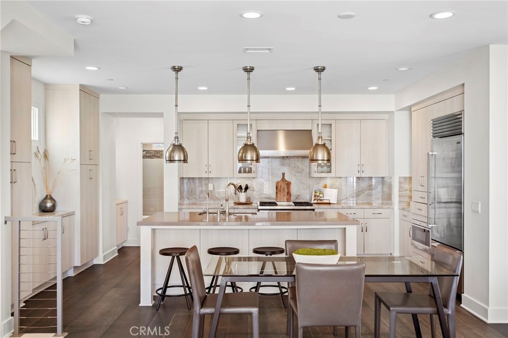 Just across the street from the sand and surf, this bright, fully detached coastal haven in the sought-after “Echo 56” enclave embodies the very best of seaside living, where the rhythm of the waves and the scent of salt air become part of everyday life. In a premier location within the community, this home commands attention with big ocean and Catalina views from the rooftop deck and upper levels, offering an ever-changing canvas of sea and sky that soothes the senses. Inside, the residence radiates modern sophistication and coastal warmth. The interiors are bathed in natural light, enhanced by artisan tilework, wood flooring, and designer finishes that elevate every detail. The gourmet kitchen is an entertainer’s dream, anchored by a large island with bar seating, a Wolf range, Sub-Zero refrigerator, custom cabinetry, and statement tile that blends artistry with function. The thoughtful architecture and open floor plan create a rare sense of privacy and tranquility, while still maintaining a continual connection to the outdoors. A rooftop deck, terraces, and private patio spaces open to soothing ocean breezes, creating ideal spaces for morning coffee, sunset gatherings, or starlit evenings overlooking the Pacific. The vast primary suite occupies an entire level of luxury; its own serene sanctuary with a direct ocean view balcony, dual walk-in closets, built-ins, and a spa-inspired bath that invites relaxation at every turn. Two additional bedrooms and a flexible bonus room for an office, gym, or creative studio add versatility and convenience for guests or family. A private rooftop deck with panoramic 360-degree views crowns the home, offering a front-row seat to endless sunsets and coastal serenity. Just steps from the sand and only a short bike ride to world-class dining and boutique shopping, this residence captures the effortless elegance of coastal Orange County living in an easily accessible location. Here, every day feels like a retreat; modern, bright, and perfectly balanced between luxury and ease.