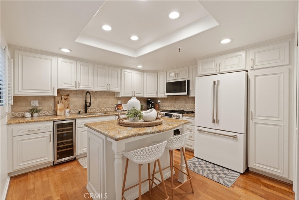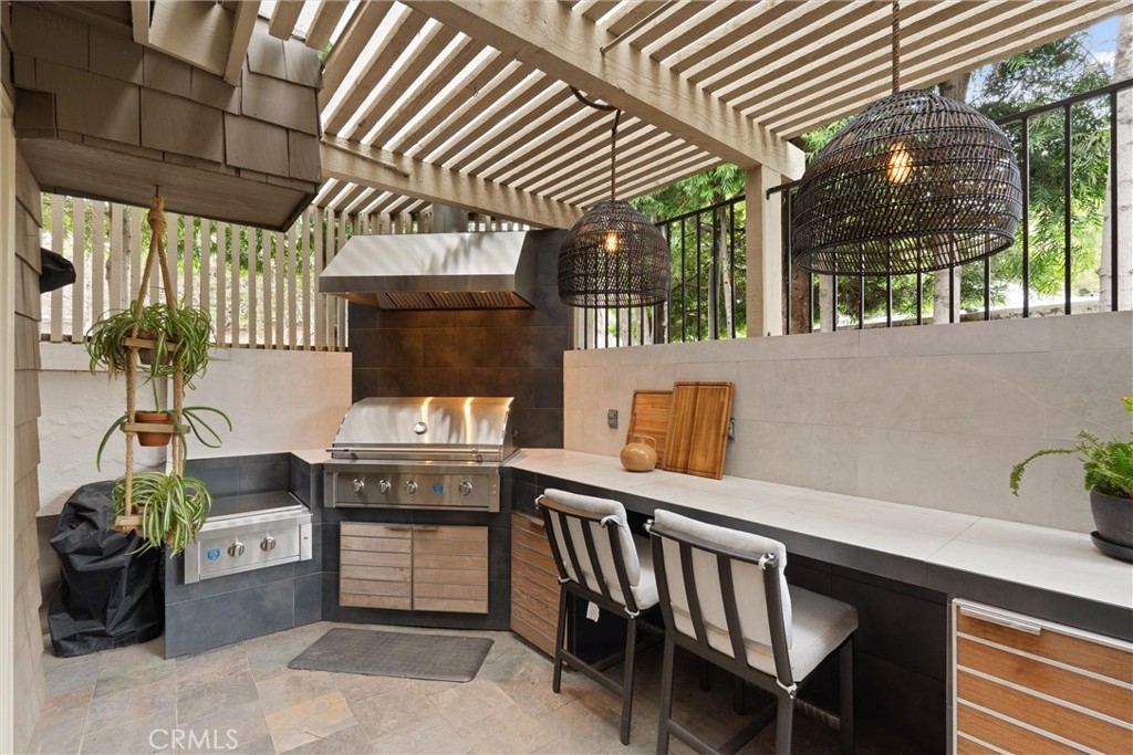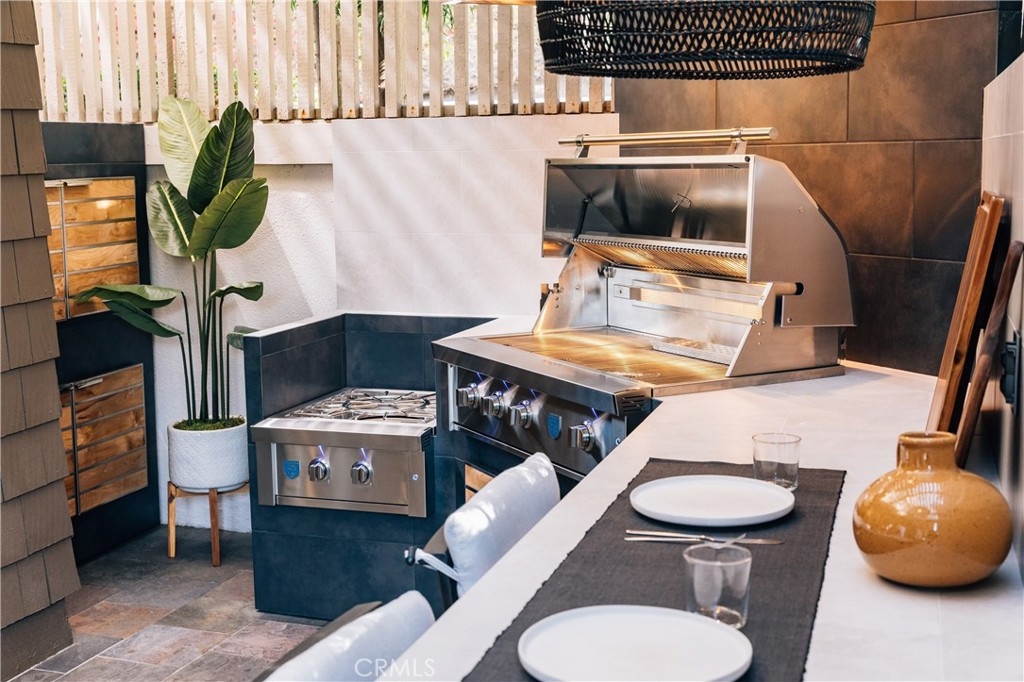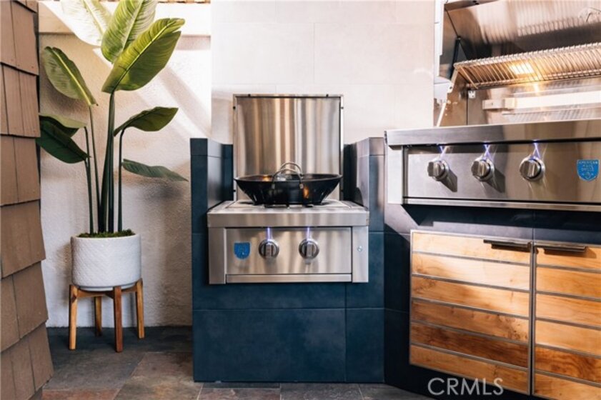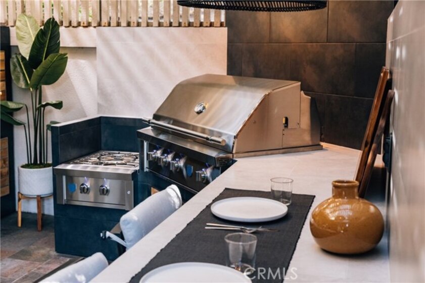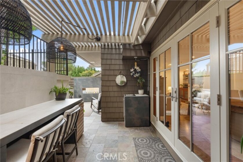 Welcome to this exceptional corner residence in the heart of Newport Beach, ideally located near Big Canyon Country Club, Fashion Island, top rated schools, John Wayne Airport, and the 73 Toll Road. Just minutes from the beach and surrounded by some of the best shopping and dining in Southern California, this stylish and architecturally refined home delivers the ultimate coastal lifestyle. The highly desirable floor plan offers privacy, natural light, and thoughtfully designed spaces for comfort and entertaining. The main level features wood flooring throughout, newer dual paned sliding wood doors, and a spacious great room anchored by a cozy gas fireplace. The formal dining area flows seamlessly into the kitchen, complete with a granite prep island, wine refrigerator, and premium appliance package. What truly sets this home apart is the custom outdoor living space. The entertainer’s patio features a fully built out outdoor kitchen with tiled island and bar seating, American Made Grills Estate 42 LP gas grill with infrared sear burner and rotisserie capability, matching power burner, and a 42 inch vent hood. Rich Madera IPE wood cabinetry provides built in storage including double access drawers for LP tanks, trash pull out, and dry storage. A striking 42 inch Kalea Bay tiled fireplace and mounted outdoor TV create a seamless transition from daytime cooking to evening relaxation. Upstairs, the light filled primary suite features soaring ceilings, ceiling fan, and a spacious walk in closet with built in dresser drawers. Step onto your private balcony to enjoy sunset views overlooking the pool. Two additional upstairs bedrooms offer flexibility for guests, family, or a home office, along with a well appointed guest bathroom. Nestled within a gated enclave, the community offers privacy and security, complemented by a beautifully landscaped courtyard and fountain that capture the essence of Newport Beach living. Additional highlights include two side-by-side parking spaces in a secure subterranean garage, with oversized storage cabinets conveniently located behind the spaces for added functionality. If you have been looking for a move in ready home with elevated outdoor living, secure parking, and an unbeatable coastal location, this is it. Schedule your private tour today.