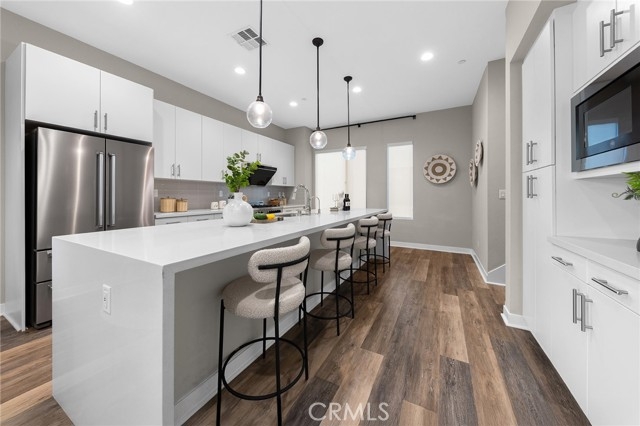 This newer constructed tri-level residence, nestled within Newport Beach's vibrant Ebb Tide community, exudes elegance and style. It is destined to become a cherished hub for gatherings with loved ones. The home offers stunning vistas , captivating sunsets, twinkling city lights, and the grandeur of Saddleback Mountain from its rooftop perch. Meticulously designed with contemporary touches, this immaculate abode boasts a rooftop terrace oriented towards the panoramic views. The terrace includes an alfresco kitchen featuring a grill and granite countertops. The residence comprises 3 bedrooms, 3.5 baths, and a main-level office with a full bath that easily transitions into a fourth bedroom to accommodate lifestyle needs. Spanning approximately 1,843 square feet, the sought-after open layout seamlessly connects expansive living spaces to a kitchen adorned with a generous waterfall island, premium Bertazzoni appliances, powerful range hood, and a welcoming balcony. The interiors are adorned with paneled interior doors, pristine white cabinetry, modern lighting fixtures, and bespoke tile work, exuding sophistication. Additionally, a two-car garage with a frosted-glass roll-up door offers added convenience. The opulent master suite boasts lofty ceilings, abundant windows, and a lavish bath, epitomizing contemporary luxury. Residents of Ebb Tide enjoy resort-style amenities, including a pool, spa, and refined communal areas for socializing. World-famous beaches are just moments away, while upscale boutiques, dining venues, and cultural attractions are mere minutes from the doorstep. This residence offers an unparalleled coastal lifestyle.