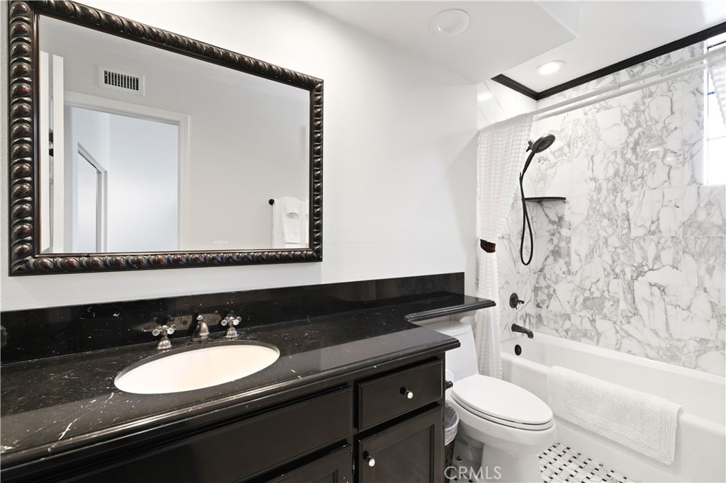Rare single-level coastal living in the prestigious guard-gated Sea Island community. This beautifully remodeled home boasts soaring ceilings and panoramic windows in the loft-like living and dining areas, framing stunning views of the Back Bay, ocean, Catalina, and city skyline. The expansive living and dining spaces are designed for both elegance and ease, perfect for entertaining or enjoying every day coastal living, and are complemented by a thoughtfully integrated wet bar with glass-front cabinets. Off the living area, a versatile flex den/office with natural light and storage adds function for work, study, or hobbies. The open floor plan features a primary suite retreat with fireplace, sitting area, dual walk-in closets, and spa-inspired bath with soaking tub, walk-in shower, dual sinks, and separate water closet, plus a secondary bedroom with en-suite bath. A third full bath off the flex den provides convenience for guests. The chef’s kitchen is bright and airy, filled with natural light, and features a breakfast nook for quiet mornings, ample countertop seating, Sub-Zero refrigerator, Viking range, and dual convection ovens. Step outside to the balcony off the living and dining areas for fresh air, seating, and BBQ, perfect for sunset enjoyment. Additional highlights include a separate laundry room, garage with built-in storage, and abundant closets. Community amenities include a resort-style pool, spa, clubhouse, tennis courts, and BBQ area, all ideally located near Fashion Island, Balboa Island, and Newport’s finest shopping, dining, and beaches.