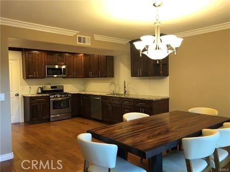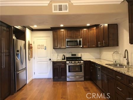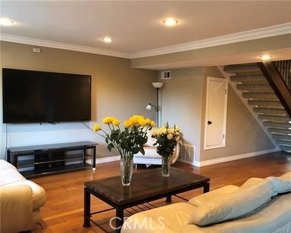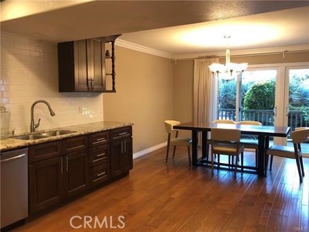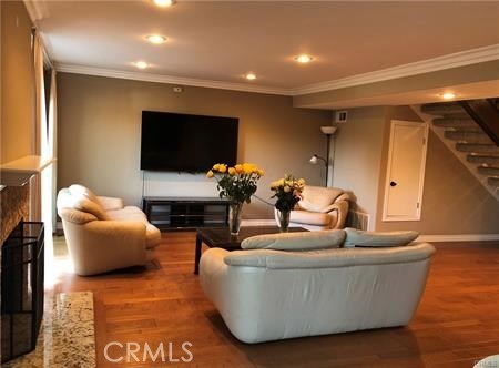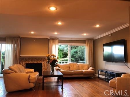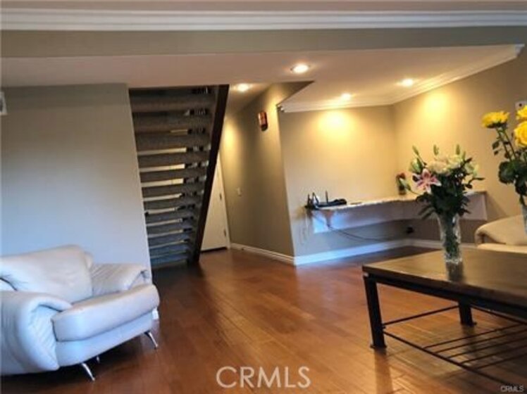 Upgraded unit in a tucked away conveniently located neighborhood of Newport Beach. Large 4 bedroom, 2.5 bathroom townhome on a greenbelt is light and bright with lots of windows to let the outside in. Distressed hardwood floors and crown molding in lower level living space. Office nook with granite desktop. Stone faced fireplace in living room. Kitchen has espresso kitchen cabinetry and stainless appliances. All bedrooms have vaulted ceilings and lots of closet space. All three bathrooms feature custom vanities with granite countertops and travertine flooring. Master bath boasts marble and custom glass features. Dual pane Jeldwen windows throughout. Carpet flooring on stairs and second level. Fenced patio area off the living/dining room accessed through two sliding glass doors, perfect to enjoy morning coffee, an afternoon BBQ or quiet evening enjoying the night sky and stars. Master and second bedroom have balconies with views of Fashion Island and peek-a-boo to the ocean. Two car attached garage with washer/dryer hookups and built in storage. Association pool, small clubhouse and BBQ shared with several other communities within short walking distance of unit. Walking distance to award winning Corona Del Mar High School and Eastbluff Elementary. Conveniently located close to Fashion Island, Back Bay Nature Preserve and hiking trails, UCI and numerous shopping and entertainment venues.