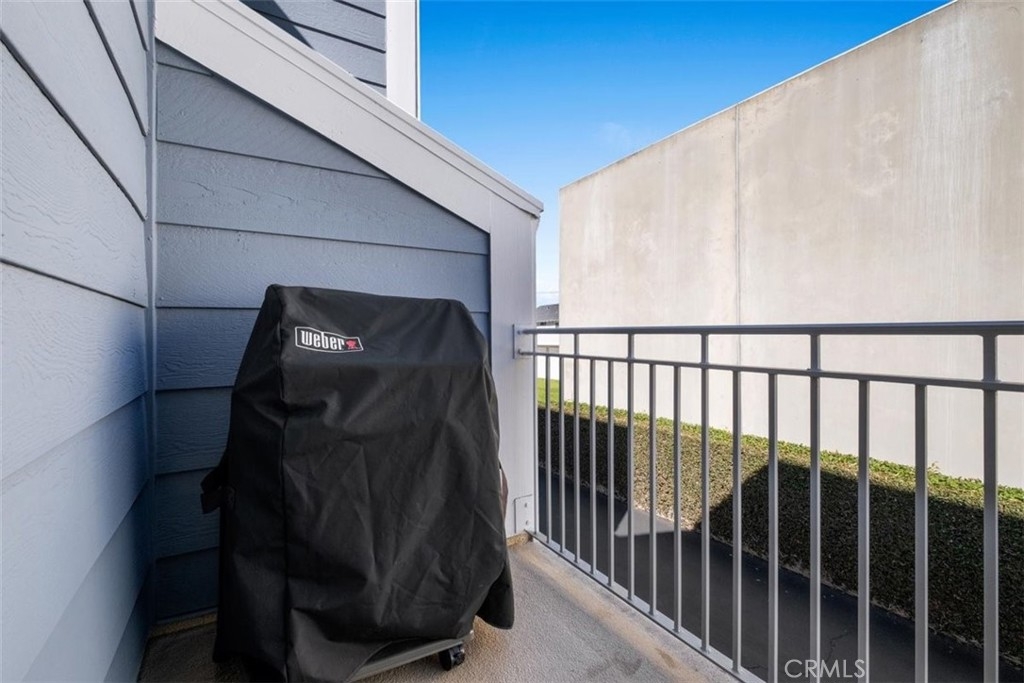 Don't miss this dramatic multi-level townhome. Gleaming wood floors are on the main level, entry, and dining area. Two story windows let the sunlight shine in from the living room drenching the main living spaces. Brick fireplace accents the spacious living room. The dining area over looks the living room and has room for an office space as well. The kitchen offers a breakfast counter, bay window, and stainless gas appliances. On the main level there is a powder room with a pedestal sink and a balcony that's great for bar-be-queing. Beautiful wood staircase leads to the top floor with two spacious bedrooms both with private bathrooms. The master bedroom offers a large walk-in closet, vaulted ceilings and access to a view deck that overlooks the pool. Large storage closet is on the deck as well. Master bathroom offers double sinks, and a large soaking tub. Two car garage has laundry access. Parking behind the garage is allowed. This location can't be beat. Walk to the beach, and enjoy incredible ocean views, and the new campus of Coastline Community College.